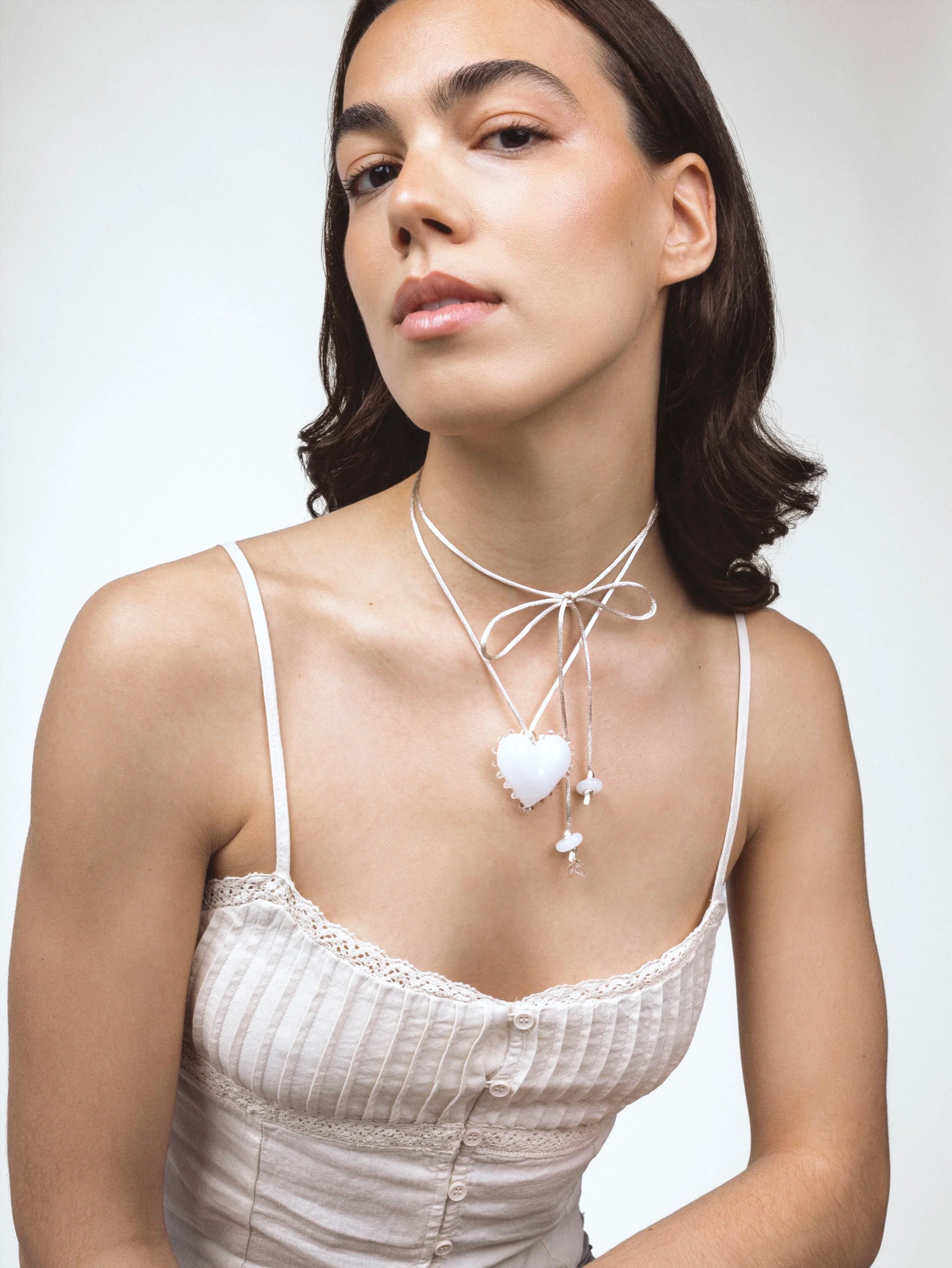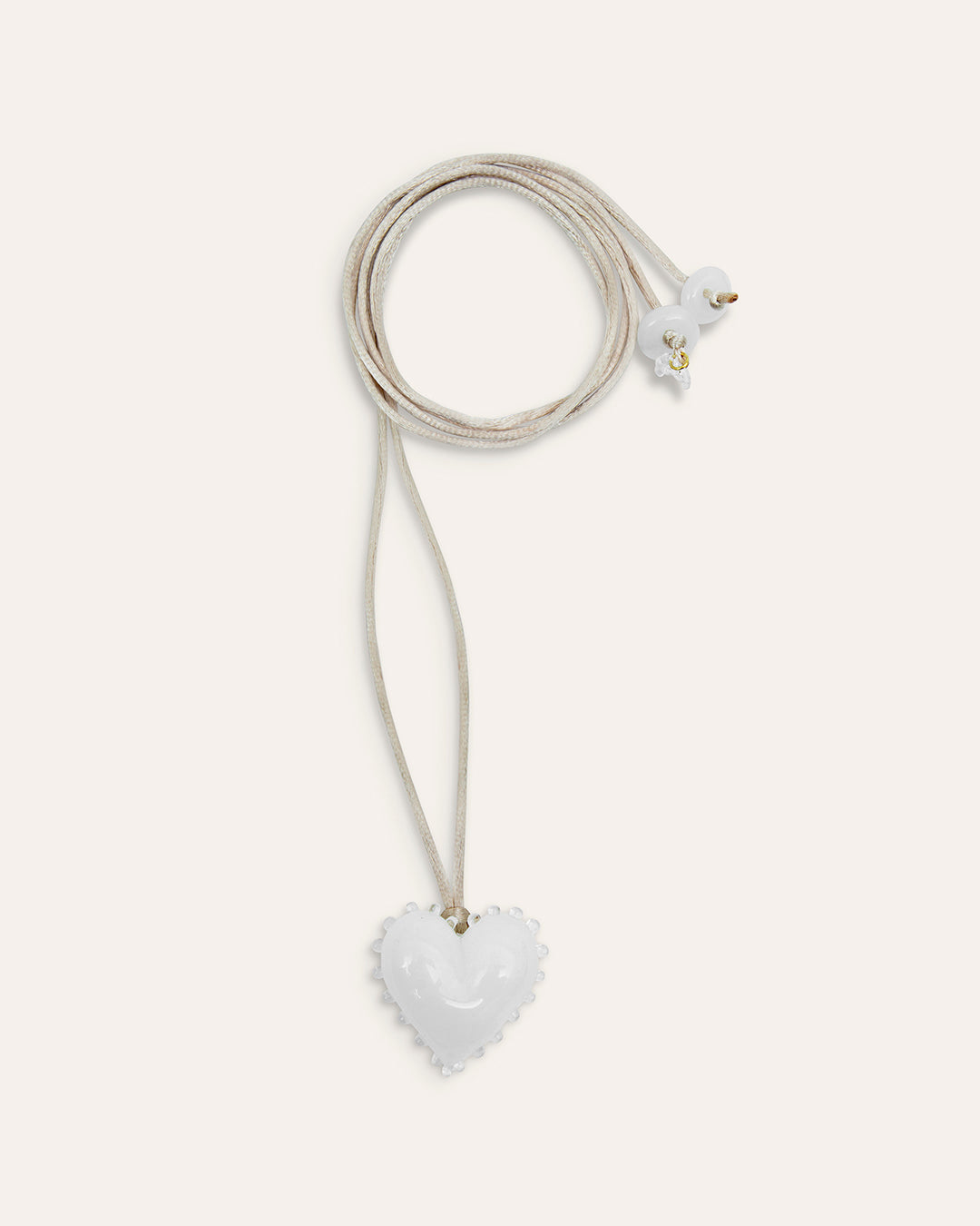 White Kardia Necklace, handmade glass pendant. Nido Collection.